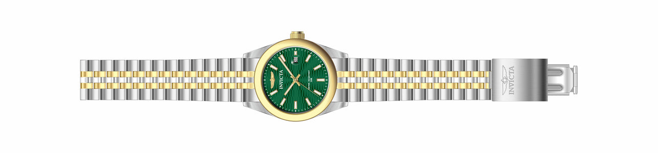 INVICTA Aviator Lady 38mm Stainless Steel Gold + Steel Green dial PC32 Quartz , Band Material: Stainless Steel, Band Tone: Steel,Gold, Band Size [mm]: 20, Band Length [mm]: 190, Buckle Type: Fold over , Crown Type : Push, Case Material : Stainless Steel, Case Tone : Gold,Steel, Case Size (mm) : 38, Case Back : Solid, Material of Hands : Metal, Color of Hands : Gold,Luminous, Crystal Type : Mineral, Bezel Material : Stainless Steel, Dial Material : Metal, Dial Color : Green, Dial Pattern : Sun-ray Finish .Purchasing these parts and having a non-authorized repair center open your watch voids all manufacturing warranties. Invicta cannot guarantee the quality standards of an altered timepiece, the standard 3-year limited warranty on Invicta timepieces shall be invalid if the timepiece is serviced at any time by an unauthorized repair center. This includes battery replacements, which must be done at an Invicta authorized repair center in order to maintain the eligibility of the warranty. Please follow the link below to learn more about Invicta's warranty.https://cdn.invictawatch.com/www/files/invicta-warranty-2018.pdf