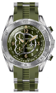 Band Material: Stainless Steel,Silicone, Band Tone: Steel,Green, Band Width: 26MM, Band Length: 210MM, Crown Type: Push, Case Material: Stainless Steel, Case Tone: Silver, Case Size [mm]: 51.5, Case Back: Solid, Material of Hands: Metal, Color of Hands: Silver,Ivory, Crystal Type: Flame Fusion, Bezel Material: Stainless Steel, Dial Material: Stainless Steel, Dial Color: Green, Dial Pattern: Sun-ray Finish .Purchasing these parts and having a non-authorized repair center open your watch voids all manufacturing warranties. Invicta cannot guarantee the quality standards of an altered timepiece, the standard 3-year limited warranty on Invicta timepieces shall be invalid if the timepiece is serviced at any time by an unauthorized repair center. This includes battery replacements, which must be done at an Invicta authorized repair center in order to maintain the eligibility of the warranty. Please follow the link below to learn more about Invicta's warranty.https://cdn.invictawatch.com/www/files/invicta-warranty-2018.pdf
