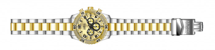 Band for Invicta Pro Diver 24605, Band Material: Stainless Steel, Band Color: Steel, Gold, Band Size (in mm): 24, Band Length (in mm): 170, Buckle Type: Diver, Clasp Type: Safety. Please note that bands do not ship with spring bars or T bars. If you need these parts, please add them to your cart with the corresponding part sku.