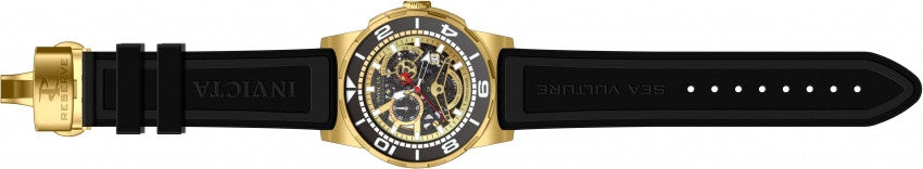 Band For Men Invicta Reserve 18947, Band Material Silicone, Band Color Black, Band Width 24 MM, Band Length 210 MM, Buckle Type Butterfly, Clasp Type Deployment, Push Button. Please note that bands do not ship with spring bars or T bars. If you need these parts, please add them to your cart with the corresponding part sku.
