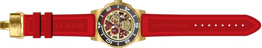 Band For Men Invicta Reserve 18949, Band Material Silicone, Band Color Red, Band Width 24 MM, Band Length 210 MM, Buckle Type Butterfly, Clasp Type Deployment, Push Button. Please note that bands do not ship with spring bars or T bars. If you need these parts, please add them to your cart with the corresponding part sku.