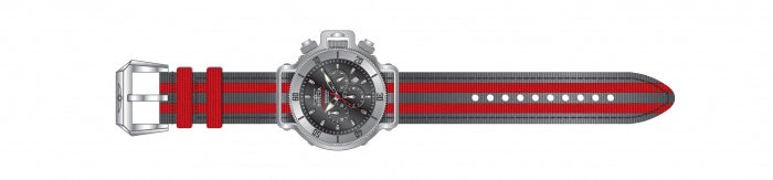 Band for Invicta Coalition Forces 25085, Band Material: Nylon, Band Color: Grey, Red, Band Size (in mm): 24, Band Length (in mm): 210, Buckle Type: Regular, Clasp Type: Regular. Please note that bands do not ship with spring bars or T bars. If you need these parts, please add them to your cart with the corresponding part sku.