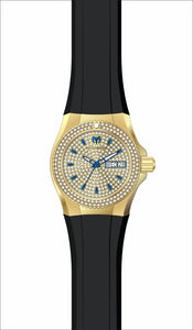 Band Material : Silicone, Band Tone : Black, Band Size [mm] : 24, Band Length [mm] : 180, Crown Type : Screw Down, Case Material : Stainless Steel, Case Tone : Gold, Case Size [mm] : 34, Case Back : Solid, Material of Hands : Metal, Color of Hands : Blue,Luminous, Crystal Type : Flame Fusion, Bezel Material : Stainless Steel, Dial Material : Metal, Dial Color : Pave, Dial Pattern : None .Purchasing these parts and having a non-authorized repair center open your watch voids all manufacturing warranties. Invicta cannot guarantee the quality standards of an altered timepiece, the standard 3-year limited warranty on Invicta timepieces shall be invalid if the timepiece is serviced at any time by an unauthorized repair center. This includes battery replacements, which must be done at an Invicta authorized repair center in order to maintain the eligibility of the warranty. Please follow the link below to learn more about Invicta's warranty.https://cdn.invictawatch.com/www/files/invicta-warranty-2018.pdf