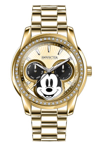 INVICTA Disney Limited Edition Lady 38mm Stainless Steel Gold Black+White+Gold dial VH64 Quartz , Band Material: Stainless Steel, Band Tone: Gold, Band Size [mm]: 18, Band Length [mm]: 190, Buckle Type: Fold over push button , Crown Type : Push, Case Material : Stainless Steel, Case Tone : Gold, Case Size (mm) : 38, Case Back : Solid, Material of Hands : Metal, Color of Hands : Gold, Crystal Type : Flame Fusion, Bezel Material : Stainless Steel, Dial Material : Metal, Dial Color : Black,White,Gold .Purchasing these parts and having a non-authorized repair center open your watch voids all manufacturing warranties. Invicta cannot guarantee the quality standards of an altered timepiece, the standard 3-year limited warranty on Invicta timepieces shall be invalid if the timepiece is serviced at any time by an unauthorized repair center. This includes battery replacements, which must be done at an Invicta authorized repair center in order to maintain the eligibility of the warranty. Please follow the link below to learn more about Invicta's warranty.https://cdn.invictawatch.com/www/files/invicta-warranty-2018.pdf