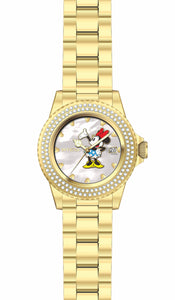 INVICTA Disney Limited Edition Lady 40mm Stainless Steel Gold White dial 515 Quartz , Band Material: Stainless Steel, Band Tone: Gold, Band Size [mm]: 20, Band Length [mm]: 205, Buckle Type: Fold over safety , Crown Type : Screw Down, Case Material : Stainless Steel, Case Tone : Gold, Case Size (mm) : 40, Case Back : Solid, Material of Hands : Metal, Color of Hands : Gold,Luminous, Crystal Type : Mineral, Bezel Material : Stainless Steel, Dial Material : Mother of Pearl, Dial Color : White, Dial Pattern : None .Purchasing these parts and having a non-authorized repair center open your watch voids all manufacturing warranties. Invicta cannot guarantee the quality standards of an altered timepiece, the standard 3-year limited warranty on Invicta timepieces shall be invalid if the timepiece is serviced at any time by an unauthorized repair center. This includes battery replacements, which must be done at an Invicta authorized repair center in order to maintain the eligibility of the warranty. Please follow the link below to learn more about Invicta's warranty.https://cdn.invictawatch.com/www/files/invicta-warranty-2018.pdf