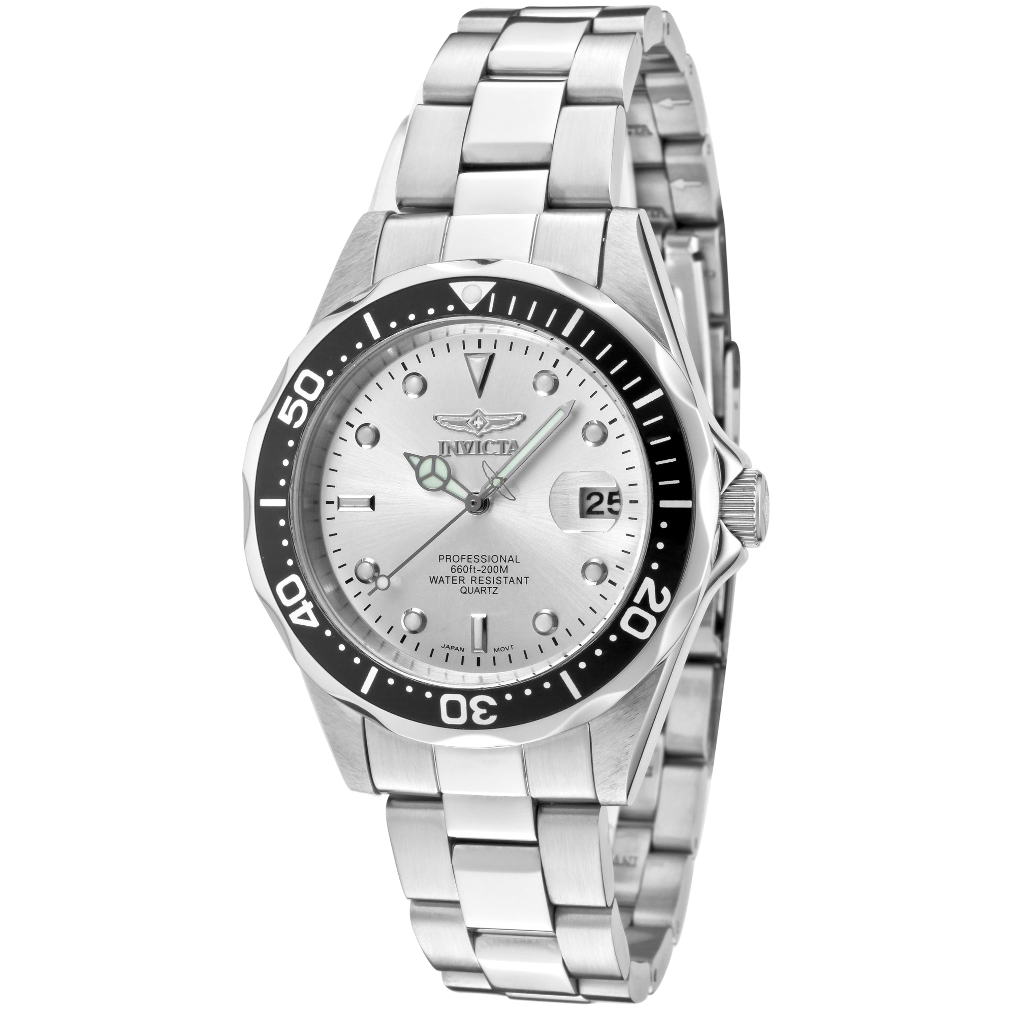 Individual Spare PARTS For Men Invicta Pro Diver 10662, Band Material Stainless Steel, Polyurethane. Band Color Steel, Black. Band Width 18 MM, Band Length 215 MM, Buckle Type Diver, Clasp Type Foldover, Safety, Crown Type Push, Case Material Stainless Steel, Case Tone Steel, Case Size (mm) 37.5, Case Back Solid, Material of Hands Metal, Color of Hands Silver, Luminous, Crystal Type Mineral, Bezel Material Stainless Steel, Dial Material Metal, Dial Color Silver, Dial Pattern SunrayPurchasing these parts and having a non-authorized repair center open your watch voids all manufacturing warranties. Invicta cannot guarantee the quality standards of an altered timepiece, the standard 3-year limited warranty on Invicta timepieces shall be invalid if the timepiece is serviced at any time by an unauthorized repair center. This includes battery replacements, which must be done at an Invicta authorized repair center in order to maintain the eligibility of the warranty. Please follow the link below to learn more about Invicta's warranty.https://cdn.invictawatch.com/www/files/invicta-warranty-2018.pdf