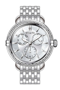 INVICTA Wildflower Lady 38mm Stainless Steel Steel White dial VH68 Quartz , Band Material: Stainless Steel, Band Tone: Steel, Band Size [mm]: 16, Band Length [mm]: 185.5, Buckle Type: Butterfly , Crown Type : Push, Case Material : Stainless Steel, Case Tone : Steel, Case Size (mm) : 38, Case Back : Solid, Material of Hands : Metal, Color of Hands : Silver, Crystal Type : Flame Fusion, Bezel Material : Stainless Steel,Cable, Dial Material : Metal,Mother of Pearl, Dial Color : White .Purchasing these parts and having a non-authorized repair center open your watch voids all manufacturing warranties. Invicta cannot guarantee the quality standards of an altered timepiece, the standard 3-year limited warranty on Invicta timepieces shall be invalid if the timepiece is serviced at any time by an unauthorized repair center. This includes battery replacements, which must be done at an Invicta authorized repair center in order to maintain the eligibility of the warranty. Please follow the link below to learn more about Invicta's warranty.https://cdn.invictawatch.com/www/files/invicta-warranty-2018.pdf
