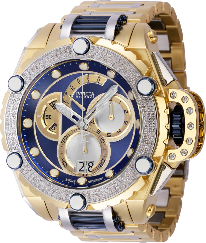Band Material: Stainless Steel, Band Tone: Dark Blue, Gold, Steel, Band Width: 26.0MM, Band Length: 210MM, Buckle Type: Fold over safety, Clasp Type: Deployment, Safety, Please note that bands do not ship with spring bars or T bars. If you need these parts, please add them to your cart with the corresponding part sku.