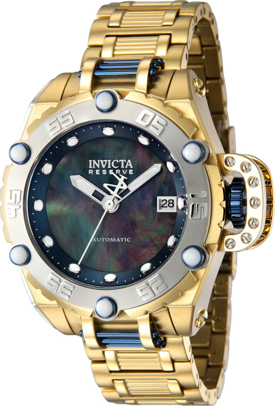 Band Material: Stainless Steel, Band Tone: Dark Blue, Gold, Band Width: 20.0MM, Band Length: 185MM, Buckle Type: Fold over safety, Clasp Type: Deployment, Safety, Please note that bands do not ship with spring bars or T bars. If you need these parts, please add them to your cart with the corresponding part sku.