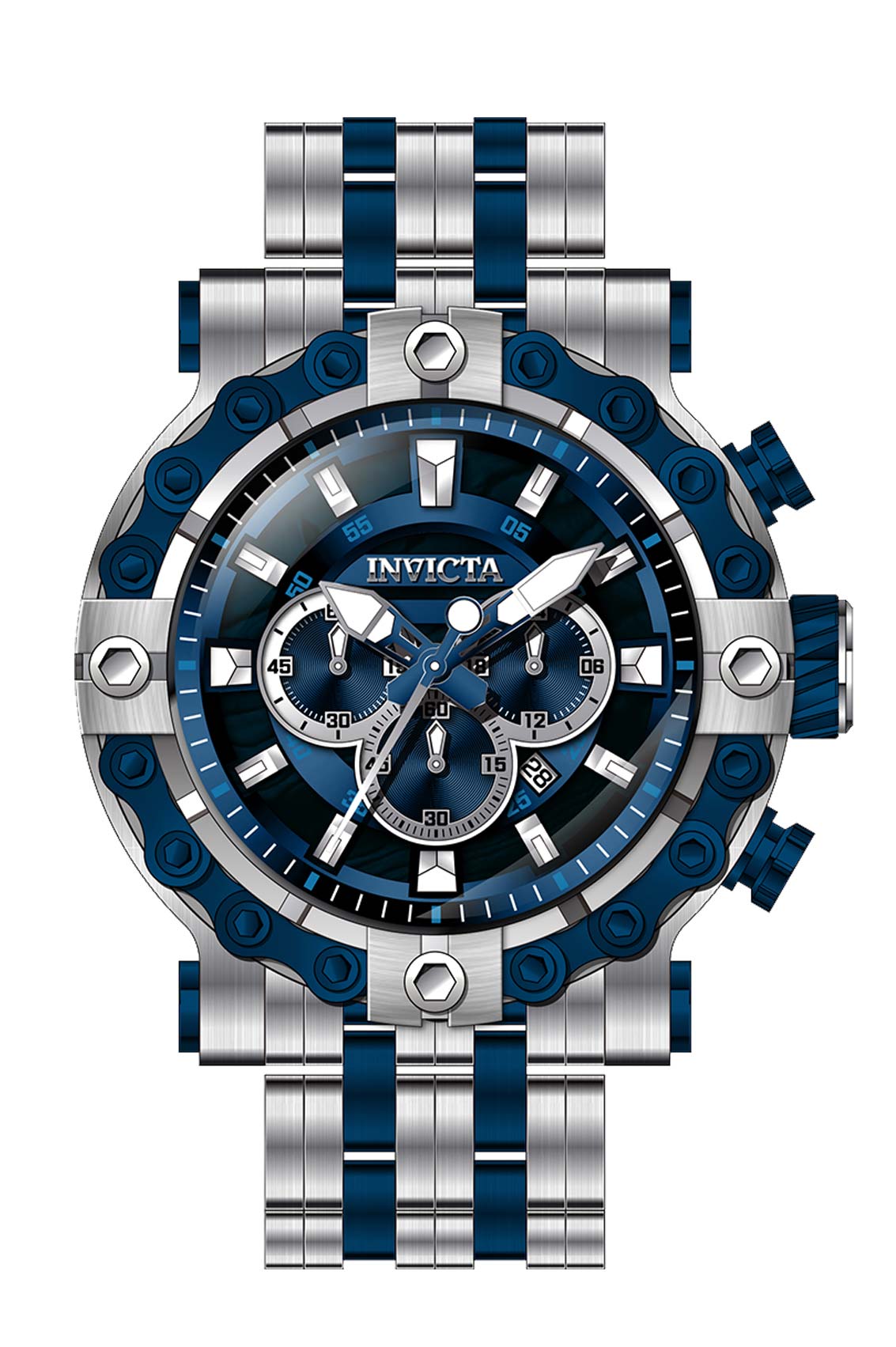 Band Material: Stainless Steel, Band Tone: Steel,Blue, Band Size [mm]: 26, Band Length [mm]: 190, Buckle Type: Fold over safety . Please note that bands do not ship with spring bars or T bars. If you need these parts, please add them to your cart with the corresponding part sku.