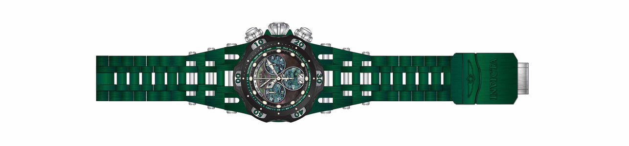 Band Material: Stainless Steel, Band Tone: Steel,Green, Band Size [mm]: 35.6, Band Length [mm]: 210, Buckle Type: Fold over safety . Please note that bands do not ship with spring bars or T bars. If you need these parts, please add them to your cart with the corresponding part sku.