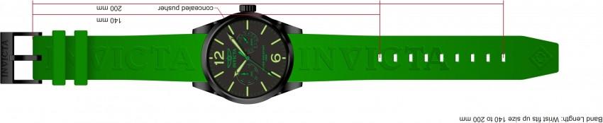 Individual Spare PARTS For Men Invicta I-Force 11762, Band Material Polyurethane, Band Color Green, Band Width 22 MM, Band Length 200 MM, Buckle Type Regular, Clasp Type Regular, Crown Type Push, Case Material Stainless Steel, Case Tone Black, Case Size (mm) 42, Case Back Solid, Material of Hands Metal, Color of Hands Black, Luminous, Crystal Type Flame Fusion, Bezel Material Stainless Steel, Dial Material Metal, Dial Color Black, Dial Pattern NonePurchasing these parts and having a non-authorized repair center open your watch voids all manufacturing warranties. Invicta cannot guarantee the quality standards of an altered timepiece, the standard 3-year limited warranty on Invicta timepieces shall be invalid if the timepiece is serviced at any time by an unauthorized repair center. This includes battery replacements, which must be done at an Invicta authorized repair center in order to maintain the eligibility of the warranty. Please follow the link below to learn more about Invicta's warranty.https://cdn.invictawatch.com/www/files/invicta-warranty-2018.pdf