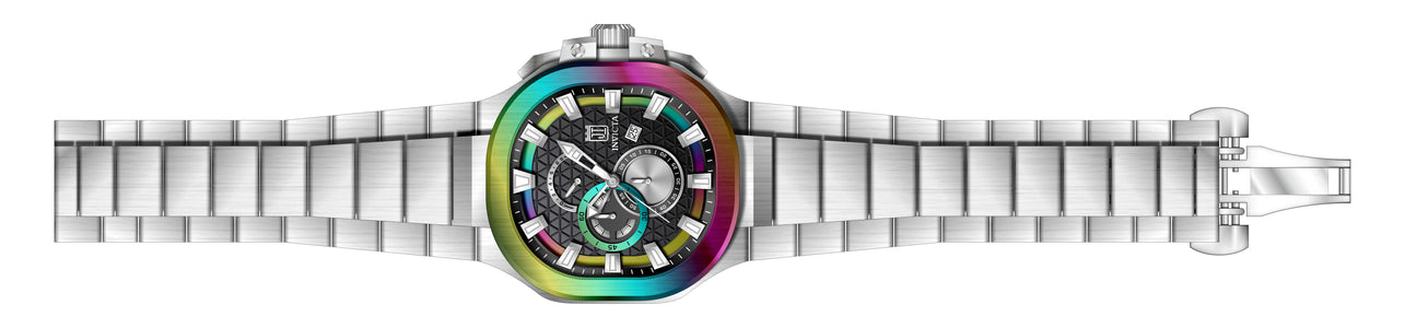 INVICTA JT Men 52mm Stainless Steel Iridescent + Steel Black dial VD50 Quartz , Band Material: Stainless Steel, Band Tone: Steel, Band Size [mm]: 34, Band Length [mm]: 205, Buckle Type: Butterfly push button , Crown Type : Push, Case Material : Stainless Steel, Case Tone : Iridescent,Steel, Case Size (mm) : 52, Case Back : Solid, Material of Hands : Metal, Color of Hands : Silver,Luminous, Crystal Type : Flame Fusion, Bezel Material : Stainless Steel, Dial Material : Metal, Dial Color : Black, Dial Pattern : Textured Pattern .Purchasing these parts and having a non-authorized repair center open your watch voids all manufacturing warranties. Invicta cannot guarantee the quality standards of an altered timepiece, the standard 3-year limited warranty on Invicta timepieces shall be invalid if the timepiece is serviced at any time by an unauthorized repair center. This includes battery replacements, which must be done at an Invicta authorized repair center in order to maintain the eligibility of the warranty. Please follow the link below to learn more about Invicta's warranty.https://cdn.invictawatch.com/www/files/invicta-warranty-2018.pdf