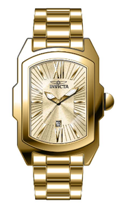 INVICTA Lupah Lady 29mm Stainless Steel Gold Gold dial PC22A Quartz , Band Material: Stainless Steel, Band Tone: Gold, Band Size [mm]: 16, Band Length [mm]: 175, Buckle Type: Fold over push button , Crown Type : Push, Case Material : Stainless Steel, Case Tone : Gold, Case Size (mm) : 29, Case Back : Solid, Material of Hands : Metal, Color of Hands : White,Gold, Crystal Type : Flame Fusion, Bezel Material : Stainless Steel, Dial Material : Metal, Dial Color : Gold .Purchasing these parts and having a non-authorized repair center open your watch voids all manufacturing warranties. Invicta cannot guarantee the quality standards of an altered timepiece, the standard 3-year limited warranty on Invicta timepieces shall be invalid if the timepiece is serviced at any time by an unauthorized repair center. This includes battery replacements, which must be done at an Invicta authorized repair center in order to maintain the eligibility of the warranty. Please follow the link below to learn more about Invicta's warranty.https://cdn.invictawatch.com/www/files/invicta-warranty-2018.pdf