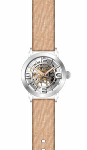 INVICTA Objet D Art Lady 36mm Stainless Steel Steel Silver dial 2650 (Nickel) Automatic , Band Material: Leather, Band Tone: Tan, Band Size [mm]: 18, Band Length [mm]: 180, Buckle Type: Buckle , Crown Type : Push, Case Material : Stainless Steel, Case Tone : Steel, Case Size (mm) : 36, Case Back : Exhibition, Material of Hands : Metal, Color of Hands : Brown, Crystal Type : Flame Fusion, Bezel Material : None, Dial Material : Metal, Dial Color : Silver, Dial Pattern : None .Purchasing these parts and having a non-authorized repair center open your watch voids all manufacturing warranties. Invicta cannot guarantee the quality standards of an altered timepiece, the standard 3-year limited warranty on Invicta timepieces shall be invalid if the timepiece is serviced at any time by an unauthorized repair center. This includes battery replacements, which must be done at an Invicta authorized repair center in order to maintain the eligibility of the warranty. Please follow the link below to learn more about Invicta's warranty.https://cdn.invictawatch.com/www/files/invicta-warranty-2018.pdf