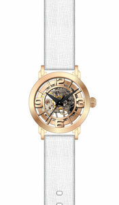 INVICTA Objet D Art Lady 36mm Stainless Steel Rose Gold Rose Gold dial 2650 (Nickel) Automatic , Band Material: Leather, Band Tone: White, Band Size [mm]: 18, Band Length [mm]: 180, Buckle Type: Buckle , Crown Type : Push, Case Material : Stainless Steel, Case Tone : Rose Gold, Case Size (mm) : 36, Case Back : Exhibition, Material of Hands : Metal, Color of Hands : Black, Crystal Type : Flame Fusion, Bezel Material : None, Dial Material : Metal, Dial Color : Rose Gold, Dial Pattern : None .Purchasing these parts and having a non-authorized repair center open your watch voids all manufacturing warranties. Invicta cannot guarantee the quality standards of an altered timepiece, the standard 3-year limited warranty on Invicta timepieces shall be invalid if the timepiece is serviced at any time by an unauthorized repair center. This includes battery replacements, which must be done at an Invicta authorized repair center in order to maintain the eligibility of the warranty. Please follow the link below to learn more about Invicta's warranty.https://cdn.invictawatch.com/www/files/invicta-warranty-2018.pdf