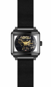 INVICTA Objet D Art Men 40mm Stainless Steel Black Black dial 7500 Automatic , Band Material: Stainless Steel, Band Tone: Black, Band Size [mm]: 22, Band Length [mm]: 210, Buckle Type: Jewelry , Crown Type : Push, Case Material : Stainless Steel, Case Tone : Black, Case Size (mm) : 40, Case Back : Exhibition, Material of Hands : Metal, Color of Hands : Gold, Crystal Type : Flame Fusion, Bezel Material : None, Dial Material : Metal, Dial Color : Black, Dial Pattern : None .Purchasing these parts and having a non-authorized repair center open your watch voids all manufacturing warranties. Invicta cannot guarantee the quality standards of an altered timepiece, the standard 3-year limited warranty on Invicta timepieces shall be invalid if the timepiece is serviced at any time by an unauthorized repair center. This includes battery replacements, which must be done at an Invicta authorized repair center in order to maintain the eligibility of the warranty. Please follow the link below to learn more about Invicta's warranty.https://cdn.invictawatch.com/www/files/invicta-warranty-2018.pdf