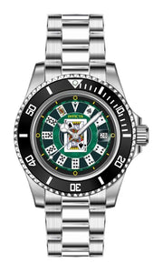 Band Material: Stainless Steel, Band Tone: Steel, Band Width: 20MM, Band Length: 184MM, Crown Type: Screw Down, Case Material: Stainless Steel, Case Tone: Steel, Case Size [mm]: 40, Case Back: Solid, Material of Hands: Brass, Color of Hands: Silver,Luminous, Crystal Type: Mineral, Bezel Material: Stainless Steel,Aluminum, Dial Material: Brass, Dial Color: Green, Dial Pattern: Glossy Finish .Purchasing these parts and having a non-authorized repair center open your watch voids all manufacturing warranties. Invicta cannot guarantee the quality standards of an altered timepiece, the standard 3-year limited warranty on Invicta timepieces shall be invalid if the timepiece is serviced at any time by an unauthorized repair center. This includes battery replacements, which must be done at an Invicta authorized repair center in order to maintain the eligibility of the warranty. Please follow the link below to learn more about Invicta's warranty.https://cdn.invictawatch.com/www/files/invicta-warranty-2018.pdf