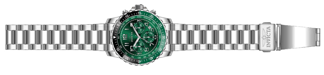 INVICTA Specialty Men 45.5mm Stainless Steel Silver Green dial VD53 Quartz , Band Material: Stainless Steel, Band Tone: Steel, Band Size [mm]: 22, Band Length [mm]: 190, Buckle Type: Fold over push button , Crown Type : Push, Case Material : Stainless Steel, Case Tone : Silver, Case Size (mm) : 45.5, Case Back : Solid, Material of Hands : Metal, Color of Hands : White,Silver, Crystal Type : Flame Fusion, Bezel Material : Stainless Steel, Dial Material : Metal, Dial Color : Green, Dial Pattern : Sun-ray Finish .Purchasing these parts and having a non-authorized repair center open your watch voids all manufacturing warranties. Invicta cannot guarantee the quality standards of an altered timepiece, the standard 3-year limited warranty on Invicta timepieces shall be invalid if the timepiece is serviced at any time by an unauthorized repair center. This includes battery replacements, which must be done at an Invicta authorized repair center in order to maintain the eligibility of the warranty. Please follow the link below to learn more about Invicta's warranty.https://cdn.invictawatch.com/www/files/invicta-warranty-2018.pdf