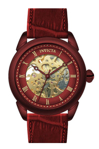 INVICTA Specialty Men 42mm Stainless Steel Red Gold dial JSD-006SJ Mechanical , Band Material: Leather, Band Tone: Red, Band Size [mm]: 22, Band Length [mm]: 225, Buckle Type: Buckle , Crown Type : Push, Case Material : Stainless Steel, Case Tone : Red, Case Size (mm) : 42, Case Back : Exhibition, Material of Hands : Metal, Color of Hands : Red, Crystal Type : Flame Fusion, Bezel Material : Stainless Steel, Dial Material : Metal, Dial Color : Gold .Purchasing these parts and having a non-authorized repair center open your watch voids all manufacturing warranties. Invicta cannot guarantee the quality standards of an altered timepiece, the standard 3-year limited warranty on Invicta timepieces shall be invalid if the timepiece is serviced at any time by an unauthorized repair center. This includes battery replacements, which must be done at an Invicta authorized repair center in order to maintain the eligibility of the warranty. Please follow the link below to learn more about Invicta's warranty.https://cdn.invictawatch.com/www/files/invicta-warranty-2018.pdf