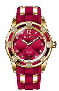 INVICTA Angel Lady 38mm Stainless Steel Gold Red dial PC21 Quartz , Band Material: Stainless Steel,Silicone, Band Tone: Gold,Red, Band Size [mm]: 20, Band Length [mm]: 200, Buckle Type: Buckle , Crown Type : Push, Case Material : Stainless Steel, Case Tone : Gold, Case Size (mm) : 38, Case Back : Solid, Material of Hands : Metal, Color of Hands : White,Gold, Crystal Type : Flame Fusion, Bezel Material : Stainless Steel, Dial Material : Metal, Dial Color : Red .Purchasing these parts and having a non-authorized repair center open your watch voids all manufacturing warranties. Invicta cannot guarantee the quality standards of an altered timepiece, the standard 3-year limited warranty on Invicta timepieces shall be invalid if the timepiece is serviced at any time by an unauthorized repair center. This includes battery replacements, which must be done at an Invicta authorized repair center in order to maintain the eligibility of the warranty. Please follow the link below to learn more about Invicta's warranty.https://cdn.invictawatch.com/www/files/invicta-warranty-2018.pdf