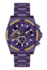 INVICTA Bolt Men 52mm Stainless Steel Purple Purple dial VD54 Quartz , Band Material: Stainless Steel, Band Tone: Purple, Band Size [mm]: 26, Band Length [mm]: 185, Buckle Type: Fold over safety , Crown Type : Push, Case Material : Stainless Steel, Case Tone : Purple, Case Size (mm) : 52, Case Back : Solid, Material of Hands : Metal, Color of Hands : Gold,Purple,Orange, Crystal Type : Flame Fusion, Bezel Material : Stainless Steel,Cable, Dial Material : Metal, Dial Color : Purple, Dial Pattern : Sun-ray Finish .Purchasing these parts and having a non-authorized repair center open your watch voids all manufacturing warranties. Invicta cannot guarantee the quality standards of an altered timepiece, the standard 3-year limited warranty on Invicta timepieces shall be invalid if the timepiece is serviced at any time by an unauthorized repair center. This includes battery replacements, which must be done at an Invicta authorized repair center in order to maintain the eligibility of the warranty. Please follow the link below to learn more about Invicta's warranty.https://cdn.invictawatch.com/www/files/invicta-warranty-2018.pdf