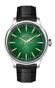 Band Material: Leather, Band Tone: Black, Band Width: 20MM, Band Length: 210MM, Crown Type: Push, Case Material: Stainless Steel, Case Tone: Steel, Case Size [mm]: 43, Case Back: Solid, Material of Hands: Brass, Color of Hands: Gold, Crystal Type: Mineral, Bezel Material: None, Dial Material: Brass, Dial Color: Green,Gradient, Dial Pattern: Sun-ray Finish .Purchasing these parts and having a non-authorized repair center open your watch voids all manufacturing warranties. Invicta cannot guarantee the quality standards of an altered timepiece, the standard 3-year limited warranty on Invicta timepieces shall be invalid if the timepiece is serviced at any time by an unauthorized repair center. This includes battery replacements, which must be done at an Invicta authorized repair center in order to maintain the eligibility of the warranty. Please follow the link below to learn more about Invicta's warranty.https://cdn.invictawatch.com/www/files/invicta-warranty-2018.pdf