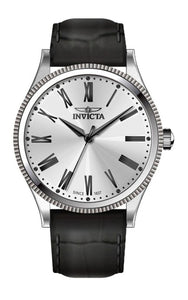 Band Material: Leather, Band Tone: Black, Band Width: 22MM, Band Length: 210MM, Crown Type: Push, Case Material: Stainless Steel, Case Tone: Steel, Case Size [mm]: 43, Case Back: Solid, Material of Hands: Brass, Color of Hands: Black, Crystal Type: Mineral, Bezel Material: None, Dial Material: Brass, Dial Color: Silver, Dial Pattern: Sun-ray Finish .Purchasing these parts and having a non-authorized repair center open your watch voids all manufacturing warranties. Invicta cannot guarantee the quality standards of an altered timepiece, the standard 3-year limited warranty on Invicta timepieces shall be invalid if the timepiece is serviced at any time by an unauthorized repair center. This includes battery replacements, which must be done at an Invicta authorized repair center in order to maintain the eligibility of the warranty. Please follow the link below to learn more about Invicta's warranty.https://cdn.invictawatch.com/www/files/invicta-warranty-2018.pdf