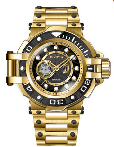 INVICTA JT Men 54mm Stainless Steel Gold Black+Gold dial NH38 Automatic , Band Material: Stainless Steel, Band Tone: Gold, Band Size [mm]: 30, Band Length [mm]: 190, Buckle Type: Fold over safety , Crown Type : Screw Down, Case Material : Stainless Steel, Case Tone : Gold, Case Size (mm) : 54, Case Back : Exhibition, Material of Hands : Metal, Color of Hands : White,Gold, Crystal Type : Flame Fusion, Bezel Material : Stainless Steel, Dial Material : Metal, Dial Color : Black,Gold .Purchasing these parts and having a non-authorized repair center open your watch voids all manufacturing warranties. Invicta cannot guarantee the quality standards of an altered timepiece, the standard 3-year limited warranty on Invicta timepieces shall be invalid if the timepiece is serviced at any time by an unauthorized repair center. This includes battery replacements, which must be done at an Invicta authorized repair center in order to maintain the eligibility of the warranty. Please follow the link below to learn more about Invicta's warranty.https://cdn.invictawatch.com/www/files/invicta-warranty-2018.pdf