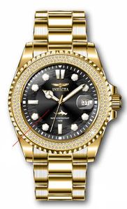INVICTA Pro Diver Lady 38mm Stainless Steel Gold Black dial PC32 Quartz , Band Material: Stainless Steel, Band Tone: Gold, Band Size [mm]: 20, Band Length [mm]: 175, Buckle Type: Fold over safety , Crown Type : Push, Case Material : Stainless Steel, Case Tone : Gold, Case Size (mm) : 38, Case Back : Solid, Material of Hands : Metal, Color of Hands : White,Gold, Crystal Type : Flame Fusion, Bezel Material : Stainless Steel, Dial Material : Metal, Dial Color : Black, Dial Pattern : Sun-ray Finish .Purchasing these parts and having a non-authorized repair center open your watch voids all manufacturing warranties. Invicta cannot guarantee the quality standards of an altered timepiece, the standard 3-year limited warranty on Invicta timepieces shall be invalid if the timepiece is serviced at any time by an unauthorized repair center. This includes battery replacements, which must be done at an Invicta authorized repair center in order to maintain the eligibility of the warranty. Please follow the link below to learn more about Invicta's warranty.https://cdn.invictawatch.com/www/files/invicta-warranty-2018.pdf
