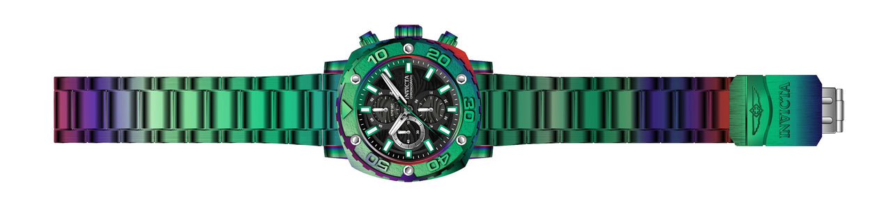 INVICTA Pro Diver Men 48mm Stainless Steel Iridescent Black+Silver dial VD55 Quartz , Band Material: Stainless Steel, Band Tone: Iridescent, Band Size [mm]: 30, Band Length [mm]: 195, Buckle Type: Fold over safety , Crown Type : Push, Case Material : Stainless Steel, Case Tone : Iridescent, Case Size (mm) : 48, Case Back : Solid, Material of Hands : Metal, Color of Hands : White,Green, Crystal Type : Flame Fusion, Bezel Material : Stainless Steel, Dial Material : Metal, Dial Color : Black,Silver .Purchasing these parts and having a non-authorized repair center open your watch voids all manufacturing warranties. Invicta cannot guarantee the quality standards of an altered timepiece, the standard 3-year limited warranty on Invicta timepieces shall be invalid if the timepiece is serviced at any time by an unauthorized repair center. This includes battery replacements, which must be done at an Invicta authorized repair center in order to maintain the eligibility of the warranty. Please follow the link below to learn more about Invicta's warranty.https://cdn.invictawatch.com/www/files/invicta-warranty-2018.pdf