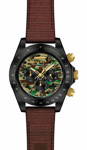 INVICTA Speedway Men 50mm Stainless Steel Gold + Black Green+Camouflage dial VR31 Quartz , Band Material: Cordura, Band Tone: Brown, Band Size [mm]: 24, Band Length [mm]: 200, Buckle Type: Buckle , Crown Type : Screw Down, Case Material : Stainless Steel, Case Tone : Gold,Black, Case Size (mm) : 50, Case Back : Solid, Material of Hands : Metal, Color of Hands : Black,Gold,Luminous, Crystal Type : Mineral, Bezel Material : Stainless Steel, Dial Material : Metal, Dial Color : Green,Camouflage, Dial Pattern : None .Purchasing these parts and having a non-authorized repair center open your watch voids all manufacturing warranties. Invicta cannot guarantee the quality standards of an altered timepiece, the standard 3-year limited warranty on Invicta timepieces shall be invalid if the timepiece is serviced at any time by an unauthorized repair center. This includes battery replacements, which must be done at an Invicta authorized repair center in order to maintain the eligibility of the warranty. Please follow the link below to learn more about Invicta's warranty.https://cdn.invictawatch.com/www/files/invicta-warranty-2018.pdf