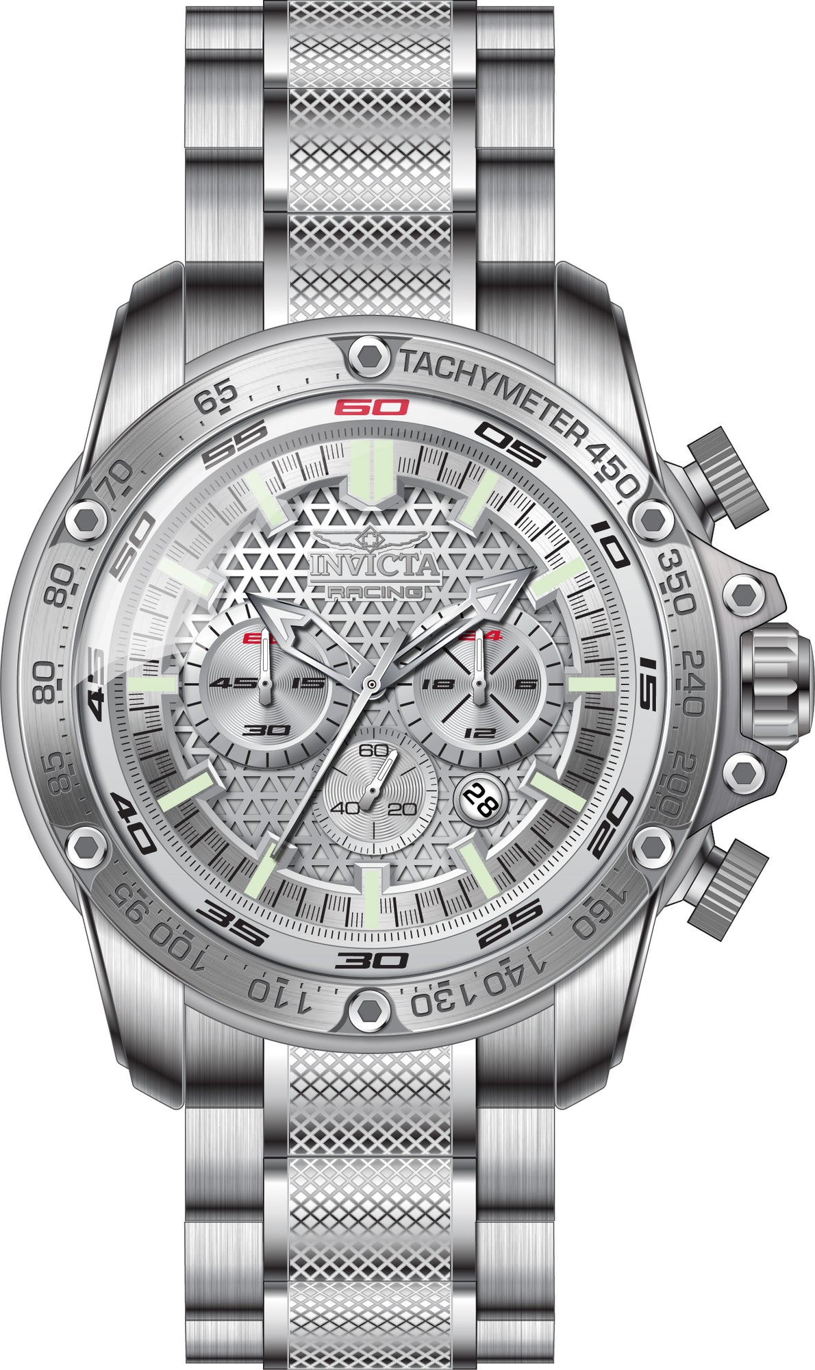 Band Material: iSize Stainless Steel, Band Tone: Silver, Band Width: 26 MM, Band Length: 185MM, Crown Type: Push, Case Material: Stainless Steel, Case Tone: Silver, Case Size [mm]: 52, Crystal Type: Mineral, Dial Material: Brass, Dial Color: Silver .Purchasing these parts and having a non-authorized repair center open your watch voids all manufacturing warranties. Invicta cannot guarantee the quality standards of an altered timepiece, the standard 3-year limited warranty on Invicta timepieces shall be invalid if the timepiece is serviced at any time by an unauthorized repair center. This includes battery replacements, which must be done at an Invicta authorized repair center in order to maintain the eligibility of the warranty. Please follow the link below to learn more about Invicta's warranty.https://cdn.invictawatch.com/www/files/invicta-warranty-2018.pdf