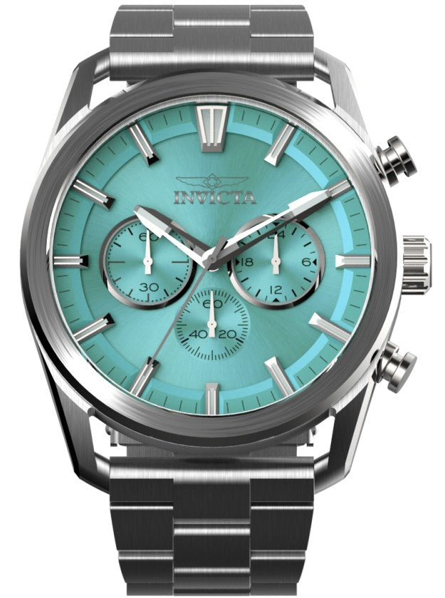 Band Material: Stainless Steel, Band Tone: Steel, Band Width: 24.00MM, Band Length: 200MM, Crown Type: Push, Case Material: Stainless Steel, Case Tone: Steel, Case Size [mm]: 45.00, Material of Hands: Brass, Color of Hands: Silver, Crystal Type: Mineral, Dial Material: Metal, Dial Color: Tiffany Blue, Dial Pattern: Sun-ray Finish .Purchasing these parts and having a non-authorized repair center open your watch voids all manufacturing warranties. Invicta cannot guarantee the quality standards of an altered timepiece, the standard 3-year limited warranty on Invicta timepieces shall be invalid if the timepiece is serviced at any time by an unauthorized repair center. This includes battery replacements, which must be done at an Invicta authorized repair center in order to maintain the eligibility of the warranty. Please follow the link below to learn more about Invicta's warranty.https://cdn.invictawatch.com/www/files/invicta-warranty-2018.pdf