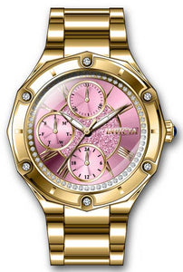 INVICTA Angel Lady 35mm Stainless Steel Gold Pink dial VH67 Quartz , Band Material: Stainless Steel, Band Tone: Gold, Band Size [mm]: 18, Band Length [mm]: 175, Buckle Type: Fold over push button , Crown Type : Push, Case Material : Stainless Steel, Case Tone : Gold, Case Size (mm) : 35, Case Back : Solid, Material of Hands : Metal, Color of Hands : White,Gold, Crystal Type : Flame Fusion, Bezel Material : Stainless Steel, Dial Material : Metal,Glitter, Dial Color : Pink, Dial Pattern : Sun-ray Finish .Purchasing these parts and having a non-authorized repair center open your watch voids all manufacturing warranties. Invicta cannot guarantee the quality standards of an altered timepiece, the standard 3-year limited warranty on Invicta timepieces shall be invalid if the timepiece is serviced at any time by an unauthorized repair center. This includes battery replacements, which must be done at an Invicta authorized repair center in order to maintain the eligibility of the warranty. Please follow the link below to learn more about Invicta's warranty.https://cdn.invictawatch.com/www/files/invicta-warranty-2018.pdf
