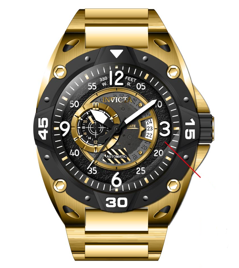 INVICTA Aviator Men 50mm Stainless Steel Gold Black dial 8217 Automatic , Band Material: Stainless Steel, Band Tone: Gold, Band Size [mm]: 30, Band Length [mm]: 197, Buckle Type: Fold over safety , Crown Type : Push, Case Material : Stainless Steel, Case Tone : Gold, Case Size (mm) : 50, Case Back : Exhibition, Material of Hands : Metal, Color of Hands : Black,White, Crystal Type : Flame Fusion, Bezel Material : Stainless Steel, Dial Material : Metal, Dial Color : Black .Purchasing these parts and having a non-authorized repair center open your watch voids all manufacturing warranties. Invicta cannot guarantee the quality standards of an altered timepiece, the standard 3-year limited warranty on Invicta timepieces shall be invalid if the timepiece is serviced at any time by an unauthorized repair center. This includes battery replacements, which must be done at an Invicta authorized repair center in order to maintain the eligibility of the warranty. Please follow the link below to learn more about Invicta's warranty.https://cdn.invictawatch.com/www/files/invicta-warranty-2018.pdf