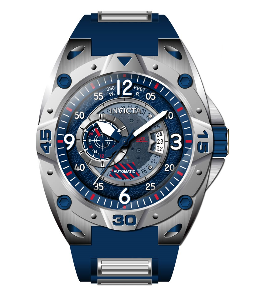 INVICTA Aviator Men 50mm Stainless Steel Silver Blue dial 8217 Automatic , Band Material: Stainless Steel,Silicone, Band Tone: Steel,Blue, Band Size [mm]: 30, Band Length [mm]: 210, Buckle Type: Buckle , Crown Type : Push, Case Material : Stainless Steel, Case Tone : Silver, Case Size (mm) : 50, Case Back : Exhibition, Material of Hands : Metal, Color of Hands : White,Blue, Crystal Type : Flame Fusion, Bezel Material : Stainless Steel, Dial Material : Metal, Dial Color : Blue .Purchasing these parts and having a non-authorized repair center open your watch voids all manufacturing warranties. Invicta cannot guarantee the quality standards of an altered timepiece, the standard 3-year limited warranty on Invicta timepieces shall be invalid if the timepiece is serviced at any time by an unauthorized repair center. This includes battery replacements, which must be done at an Invicta authorized repair center in order to maintain the eligibility of the warranty. Please follow the link below to learn more about Invicta's warranty.https://cdn.invictawatch.com/www/files/invicta-warranty-2018.pdf