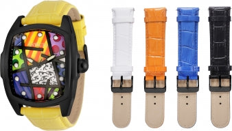 Band Material: Leather, Band Tone: Yellow, Blue, Orange, and Black Band Width: 16MM, Band Length: 190MM, Buckle Type: Buckle, Please note that bands do not ship with spring bars or T bars. If you need these parts, please add them to your cart with the corresponding part sku.