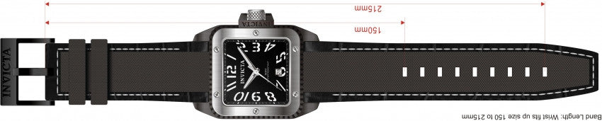 Band For Men Invicta Cuadro 1457, Band Material Leather, Band Color Black, Band Width 28 MM, Band Length 215 MM, Buckle Type Regular, Clasp Type Regular. Please note that bands do not ship with spring bars or T bars. If you need these parts, please add them to your cart with the corresponding part sku.