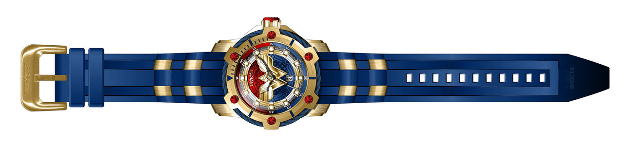 Individual Spare PARTS For Invicta DC Comics 26834, Band Material: Silicone, Stainless Steel, Band Tone: Blue, Gold, Band size in mm: 22, Band Length in mm: 189, Buckle Type: Regular, Clasp Type: Regular, Crown Type Push, Case Material Stainless Steel, Case Tone Gold, Case Size (mm) 39.5, Case Back Solid, Material of Hands Metal, Color of Hands Gold, Crystal Type Flame Fusion, Bezel Material Stainless Steel, Cable, Dial Material Metal, Dial Color Blue, Dial Pattern TexturedPurchasing these parts and having a non-authorized repair center open your watch voids all manufacturing warranties. Invicta cannot guarantee the quality standards of an altered timepiece, the standard 3-year limited warranty on Invicta timepieces shall be invalid if the timepiece is serviced at any time by an unauthorized repair center. This includes battery replacements, which must be done at an Invicta authorized repair center in order to maintain the eligibility of the warranty. Please follow the link below to learn more about Invicta's warranty.https://cdn.invictawatch.com/www/files/invicta-warranty-2018.pdf