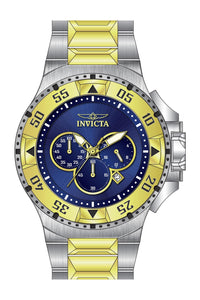 INVICTA Excursion Men 50mm Stainless Steel Gold + Steel Blue+Gold dial VD53 Quartz , Band Material: Stainless Steel, Band Tone: Steel,Gold, Band Size [mm]: 30, Band Length [mm]: 210, Buckle Type: Fold over safety , Crown Type : Push, Case Material : Stainless Steel, Case Tone : Gold,Steel, Case Size (mm) : 50, Case Back : Solid, Material of Hands : Metal, Color of Hands : Gold,Luminous, Crystal Type : Mineral, Bezel Material : Stainless Steel, Dial Material : Metal, Dial Color : Blue,Gold, Dial Pattern : Sun-ray Finish .Purchasing these parts and having a non-authorized repair center open your watch voids all manufacturing warranties. Invicta cannot guarantee the quality standards of an altered timepiece, the standard 3-year limited warranty on Invicta timepieces shall be invalid if the timepiece is serviced at any time by an unauthorized repair center. This includes battery replacements, which must be done at an Invicta authorized repair center in order to maintain the eligibility of the warranty. Please follow the link below to learn more about Invicta's warranty.https://cdn.invictawatch.com/www/files/invicta-warranty-2018.pdf