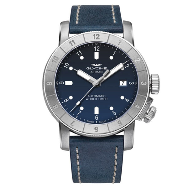 Band for Glycine Airman GL0151, Band Material: Leather Band Color: Blue Band Width (mm): 22 Band Length (mm): 210 Buckle Type: Regular