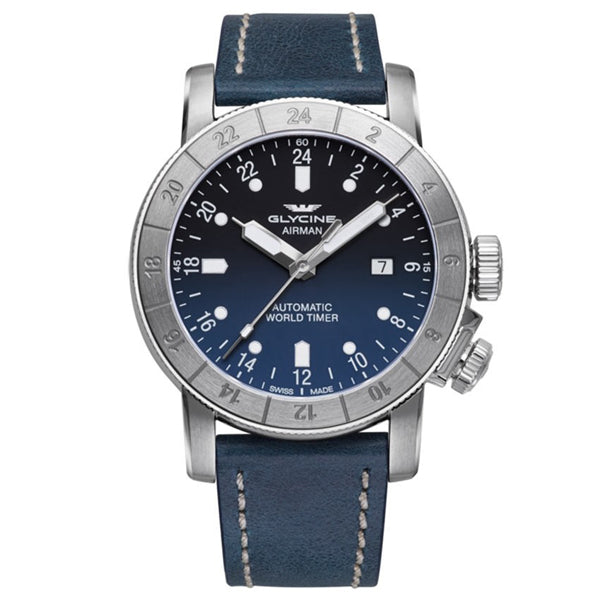 Band for Glycine Airman GL0057, Band Material: Leather Band Color: Blue Band Width (mm): 22 Band Length (mm): 200 Buckle Type: Regular