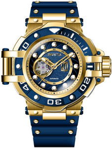 INVICTA JT Men 54mm Stainless Steel Gold Blue+Gold dial NH38 Automatic , Band Material: Silicone, Band Tone: Blue, Band Size [mm]: 30, Band Length [mm]: 210, Buckle Type: Buckle , Crown Type : Screw Down, Case Material : Stainless Steel, Case Tone : Gold, Case Size (mm) : 54, Case Back : Exhibition, Material of Hands : Metal, Color of Hands : White,Gold, Crystal Type : Flame Fusion, Bezel Material : Stainless Steel, Dial Material : Metal, Dial Color : Blue,Gold .Purchasing these parts and having a non-authorized repair center open your watch voids all manufacturing warranties. Invicta cannot guarantee the quality standards of an altered timepiece, the standard 3-year limited warranty on Invicta timepieces shall be invalid if the timepiece is serviced at any time by an unauthorized repair center. This includes battery replacements, which must be done at an Invicta authorized repair center in order to maintain the eligibility of the warranty. Please follow the link below to learn more about Invicta's warranty.https://cdn.invictawatch.com/www/files/invicta-warranty-2018.pdf