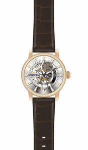 INVICTA Objet D Art Lady 36mm Stainless Steel Rose Gold Silver dial 2650 (Nickel) Automatic , Band Material: Leather, Band Tone: Brown, Band Size [mm]: 18, Band Length [mm]: 195, Buckle Type: Buckle , Crown Type : Push, Case Material : Stainless Steel, Case Tone : Rose Gold, Case Size (mm) : 36, Case Back : Exhibition, Material of Hands : Metal, Color of Hands : Black,Luminous, Crystal Type : Flame Fusion, Bezel Material : Stainless Steel, Dial Material : Metal, Dial Color : Silver, Dial Pattern : None .Purchasing these parts and having a non-authorized repair center open your watch voids all manufacturing warranties. Invicta cannot guarantee the quality standards of an altered timepiece, the standard 3-year limited warranty on Invicta timepieces shall be invalid if the timepiece is serviced at any time by an unauthorized repair center. This includes battery replacements, which must be done at an Invicta authorized repair center in order to maintain the eligibility of the warranty. Please follow the link below to learn more about Invicta's warranty.https://cdn.invictawatch.com/www/files/invicta-warranty-2018.pdf