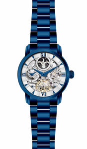 INVICTA Objet D Art Lady 42mm Stainless Steel Blue Silver dial Z-2031 (Nickel) Automatic , Band Material: Stainless Steel, Band Tone: Blue, Band Size [mm]: 22, Band Length [mm]: 200, Buckle Type: Butterfly , Crown Type : Push, Case Material : Stainless Steel, Case Tone : Blue, Case Size (mm) : 42, Case Back : Exhibition, Material of Hands : Metal, Color of Hands : Blue, Crystal Type : Flame Fusion, Bezel Material : None, Dial Material : Metal, Dial Color : Silver, Dial Pattern : Textured Pattern .Purchasing these parts and having a non-authorized repair center open your watch voids all manufacturing warranties. Invicta cannot guarantee the quality standards of an altered timepiece, the standard 3-year limited warranty on Invicta timepieces shall be invalid if the timepiece is serviced at any time by an unauthorized repair center. This includes battery replacements, which must be done at an Invicta authorized repair center in order to maintain the eligibility of the warranty. Please follow the link below to learn more about Invicta's warranty.https://cdn.invictawatch.com/www/files/invicta-warranty-2018.pdf