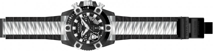 Band for Invicta Marvel 26762, Band Material: Stainless Steel, Band Color: Black, Steel, Band Width: 31mm, Band Length: 230mm, Buckle Type: Diver, Clasp Type: Deployment, Safety. Please note that bands do not ship with spring bars or T bars. If you need these parts, please add them to your cart with the corresponding part sku.