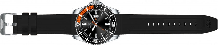 Band For Men Invicta Pro Diver 21392, Band Material Silicone, Band Color Black, Band Width 24 MM, Band Length 215 MM, Buckle Type Regular, Clasp Type Regular. Please note that bands do not ship with spring bars or T bars. If you need these parts, please add them to your cart with the corresponding part sku.