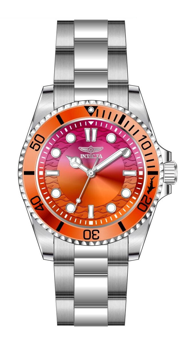Band Material: Stainless Steel, Band Tone: Steel, Band Width: 22MM, Band Length: 180MM, Crown Type: Push, Case Material: Stainless Steel, Case Tone: Steel, Case Size [mm]: 43, Case Back: Solid, Material of Hands: Brass, Color of Hands: Silver,Luminous, Crystal Type: Mineral, Bezel Material: Stainless Steel,Aluminum, Dial Material: Brass, Dial Color: Orange,Red,Gradient, Dial Pattern: Sun-ray Finish .Purchasing these parts and having a non-authorized repair center open your watch voids all manufacturing warranties. Invicta cannot guarantee the quality standards of an altered timepiece, the standard 3-year limited warranty on Invicta timepieces shall be invalid if the timepiece is serviced at any time by an unauthorized repair center. This includes battery replacements, which must be done at an Invicta authorized repair center in order to maintain the eligibility of the warranty. Please follow the link below to learn more about Invicta's warranty.https://cdn.invictawatch.com/www/files/invicta-warranty-2018.pdf