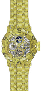 Band Material: Stainless Steel, Band Tone: Gold, Band Width: 26MM, Band Length: 230MM, Buckle Type: Buckle, Clasp Type: Buckle, Crown Type : Screw Down, Case Material : Stainless Steel, Case Tone : Gold, Case Size [mm] : 51, Case Back : Exhibition, Material of Hands : Metal, Color of Hands : White,Gold,Luminous, Crystal Type : Flame Fusion, Bezel Material : Stainless Steel, Dial Material : Metal,Skeleton, Dial Color : Gold, Dial Pattern : None .Purchasing these parts and having a non-authorized repair center open your watch voids all manufacturing warranties. Invicta cannot guarantee the quality standards of an altered timepiece, the standard 3-year limited warranty on Invicta timepieces shall be invalid if the timepiece is serviced at any time by an unauthorized repair center. This includes battery replacements, which must be done at an Invicta authorized repair center in order to maintain the eligibility of the warranty. Please follow the link below to learn more about Invicta's warranty.https://cdn.invictawatch.com/www/files/invicta-warranty-2018.pdf